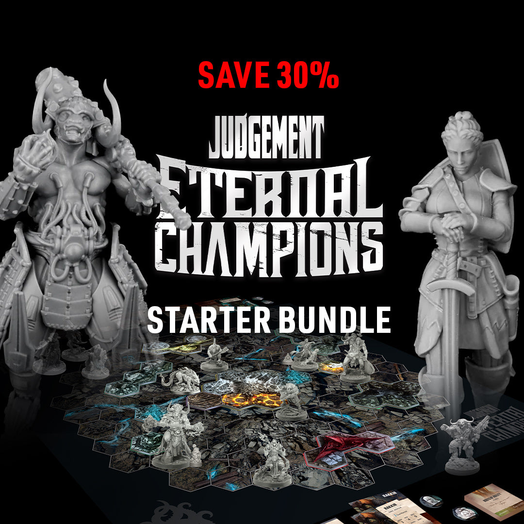 Judgement: Eternal Champions is an action-packed and competitive tabletop miniatures game for 2 players. Inspired by the exciting playstyle of MOBA (multiplayer online battle arena) games, Judgement's gods pit heroes against each other in an epic battle to gain ultimate control.