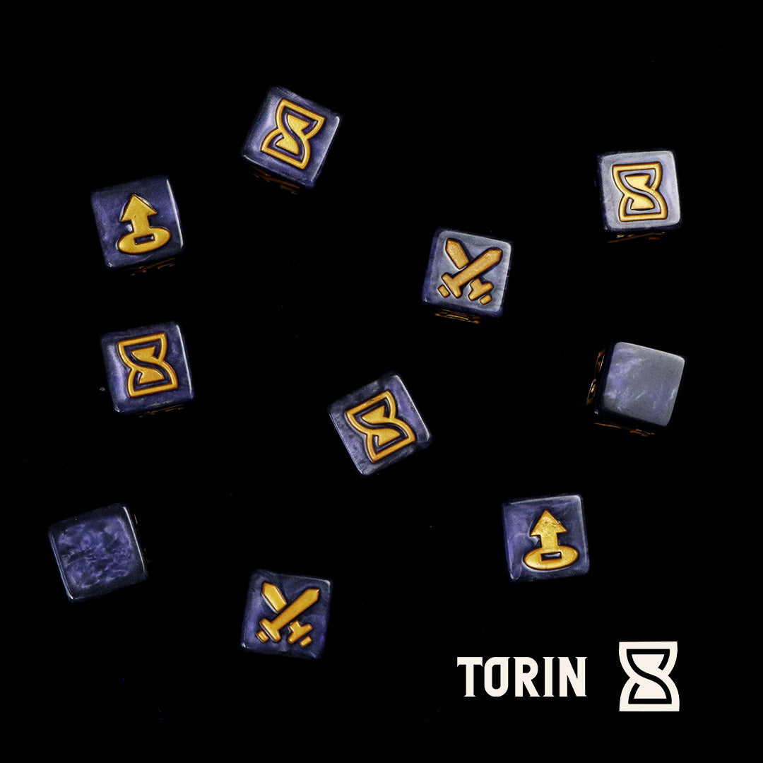 Each dice set displays your god's symbol in place of the classic Judgement "J".